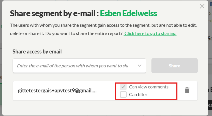 - Enter the email address(es) of the person(s) you want to share the segment with.