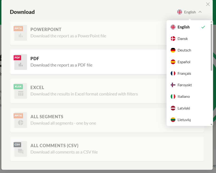 - Download in your preferred language: Easily switch languages if you want to download reports in different languages.