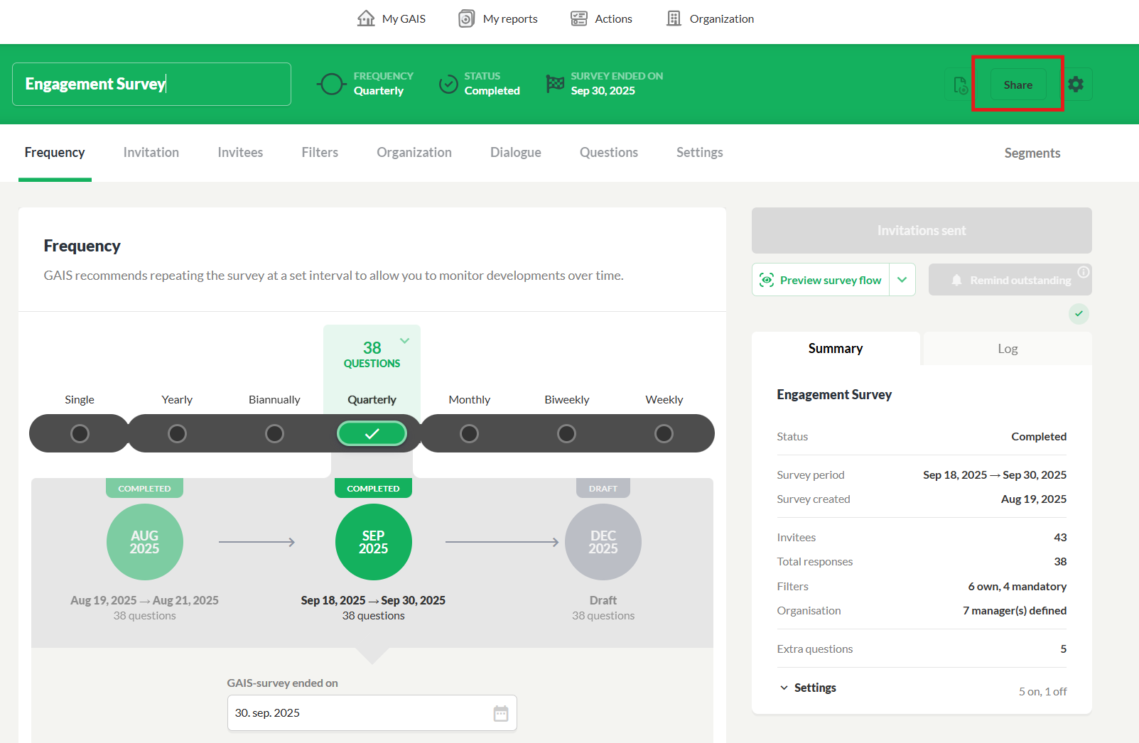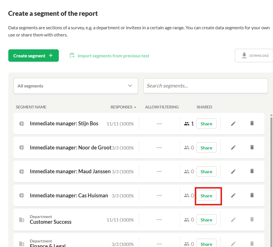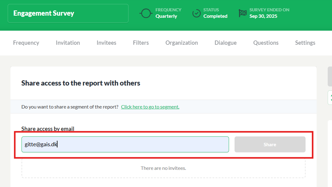 You can also choose to share a segment of the company report with one or more people. It could be department managers in your organization. When you share a segment the people you share the segment with have access to use GAIS’ digital functions within the given segment.