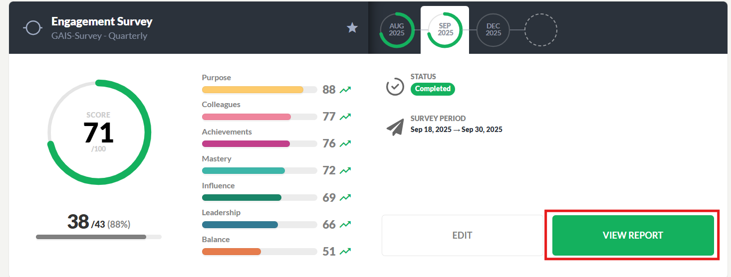 Once you have conducted a survey, you have the option to share the full report or sections of the report with a manager or a colleague.